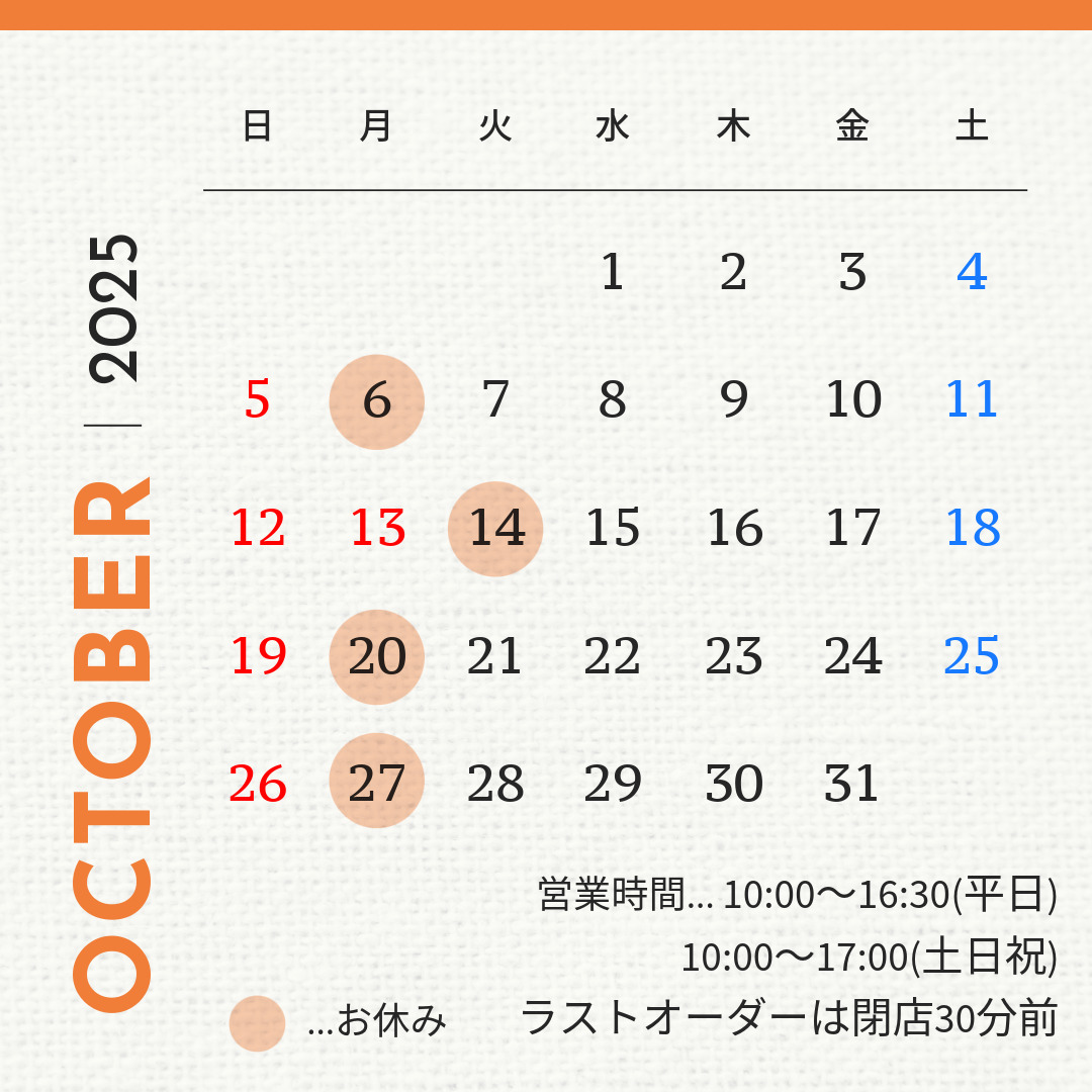 10月の営業のお知らせです。